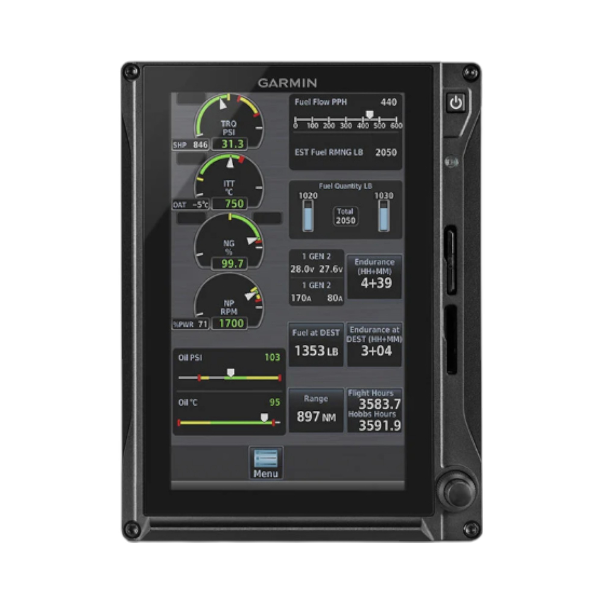 O Garmin TXi EIS 7" Portrait para motores a pistão duplos é um sistema avançado de monitoramento de motores (Engine Indication System – EIS), projetado para exibir em tempo real todos os parâmetros críticos de ambas as unidades de propulsão. Em formato vertical de 7 polegadas e configuração standalone (sem interface com outros displays TXi), este sistema oferece precisão, confiabilidade e clareza visual excepcionais, proporcionando uma operação mais segura e eficiente.